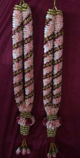 - Typically constructed from fresh rose petals, green leaves, and decorative beads.